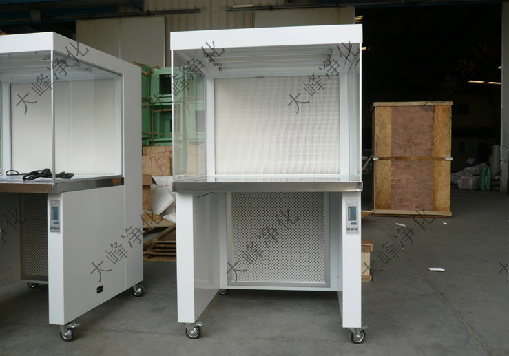 江苏大峰净化科技有限公司的洁净工作台采用垂直流形,准闭合式台面,可有效防止外部气流透入,及操作异味对人体的刺激;工作区风速始终处采用可调风量风机系统,轻触型开关调节电压大小,保证于理想状态;工作台面为304不锈钢材质,箱体钢板烤漆。(需要全不绣钢的可定做)净化工作台从操作人员数上分为单人工作台和双人工作台,从结构上分为常规型和新型推拉以及自循环型。垂直送风工作台从上往下吹风的密封性及达到过滤效率效果更好。