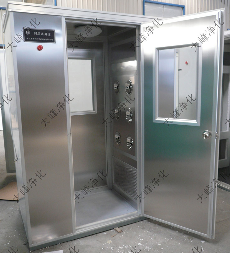 大峰净化的风淋室是洁净厂房和装配洁净室的配套设备,用洁净空气流吹除进入洁净厂房的人、物表面附着的尘埃,同时起气闸作用,防止未经净化的空气进入洁净区域。是进行人身、物料净化和防止室外空气侵入洁净区的有效设备,通用性强,可与所有洁净室和洁净厂房配套使用。