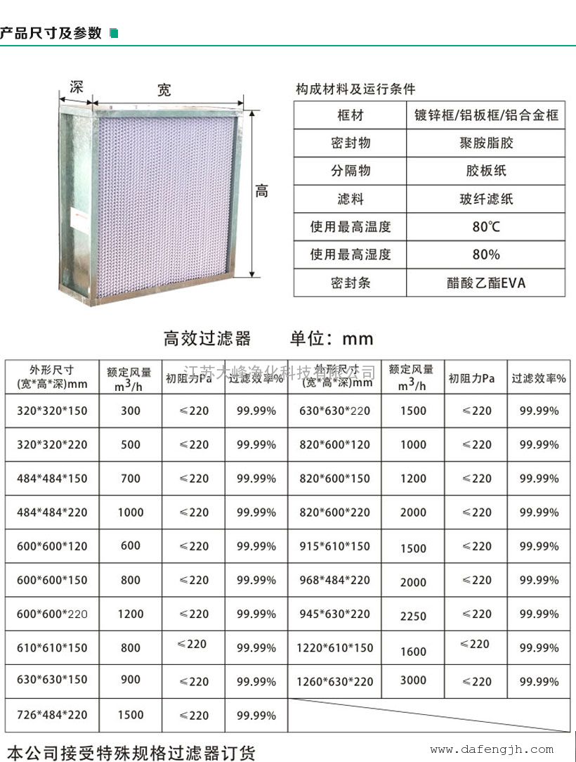 大峰净化|高效过滤器|镀锌框过滤器|铝板框320*320*150