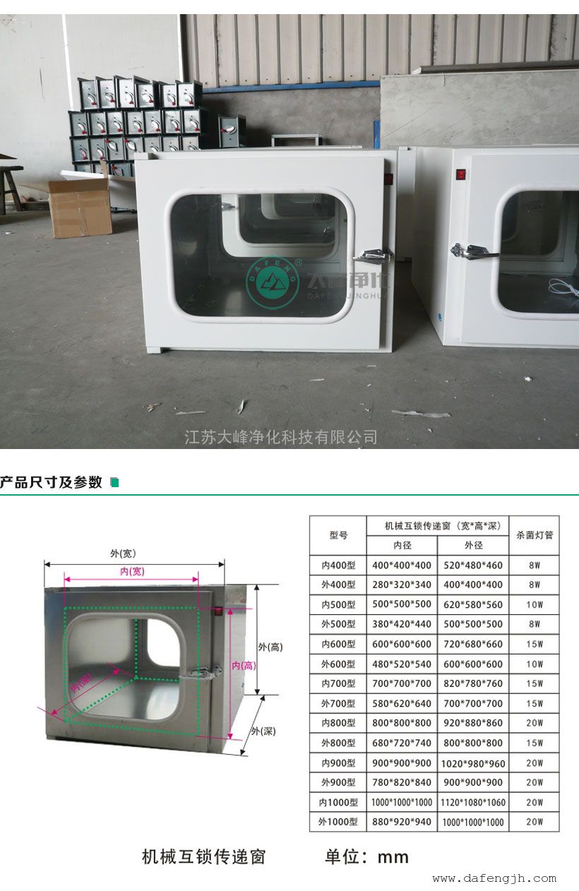 大峰净化机械联锁传递窗内400型