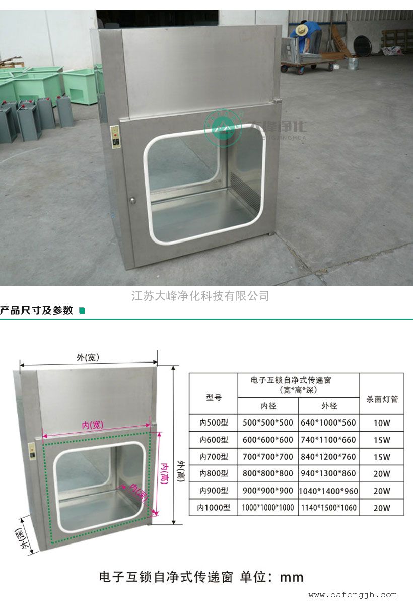 大峰净化电子互锁自净式传递窗内500型-内1000型