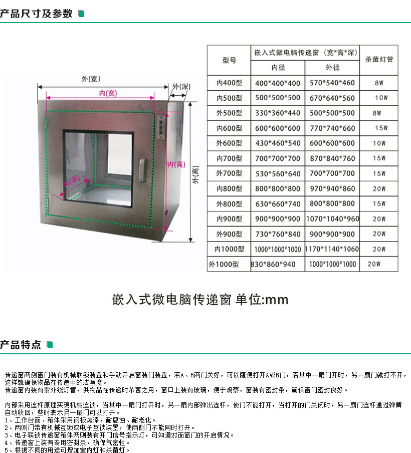 大峰净化嵌入式微电脑传递窗内400型-内1000型